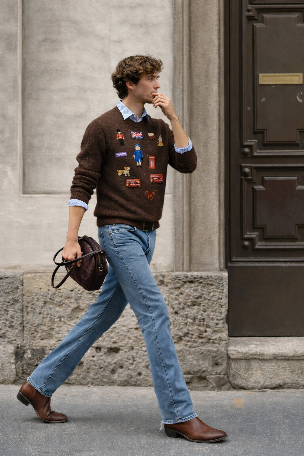 Whitforde knitwear is built from dense wool blends and finished with detailed embroidery inspired by heritage and travel.